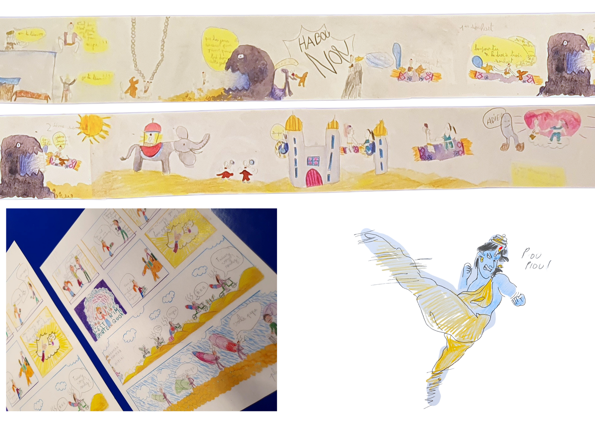 Au fil des séances, les enfants acquièrent les outils essentiels de la BD : chemin de fer, tracé des cases, rough, crayonné, encrage… Chaque étape compte pour construire des projets aboutis, cohérents — et surtout, des réalisations dont ils sont vraiment fiers !
