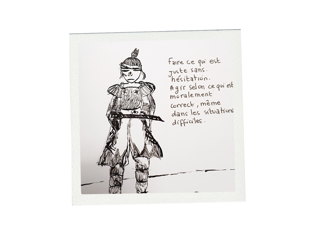Les pratiques suivent l’immersion : chaque technique est choisie en lien avec le style ou l’époque abordée. Par exemple, un carnet cousu main et crayonné pour s’inspirer des Codex de Léonard de Vinci, ou de l’encre de Chine pour raconter l’histoire d’un samouraï.