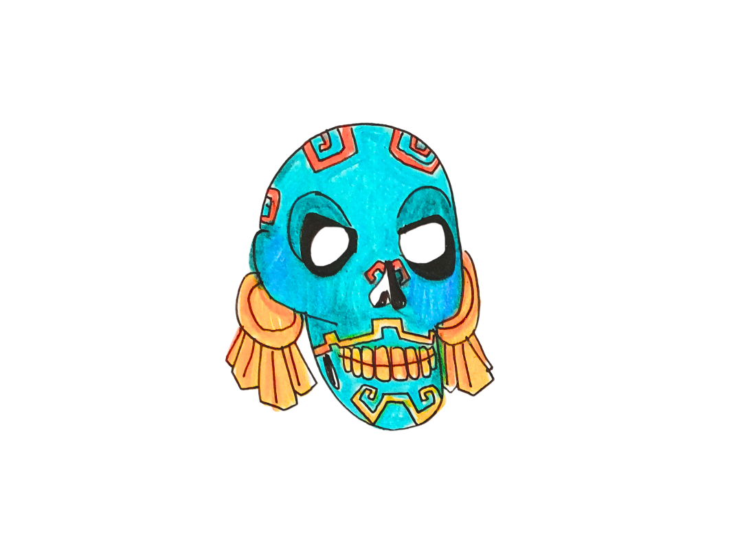 Viens créer ton masque aztèque ! Dans cet atelier, tu découvriras les symboles de cette ancienne civilisation : le squelette, le bleu turquoise, les grandes boucles d’oreilles appelées orejeras et les motifs géométriques particuliers qu’on appelle xicalcoliuhqui (imprononçable, on le sait !).