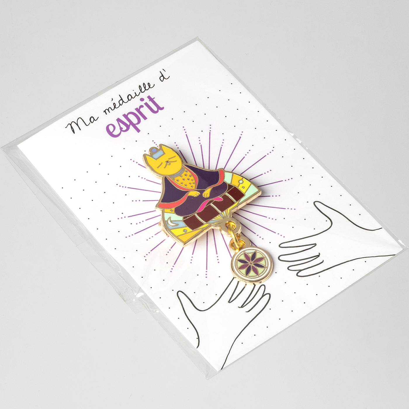On raconte qu'il faut 10 000 ans pour avoir une âme parfaite. Espérons qu'avec ses neufs vies, ce chat y parviendra ! Assis sur son livre et son corps flottant dans l'Univers, il est réflexion, philosophie, analyse. L'Esprit lui permet de voir le monde avec les yeux du sage et de mieux le comprendre.